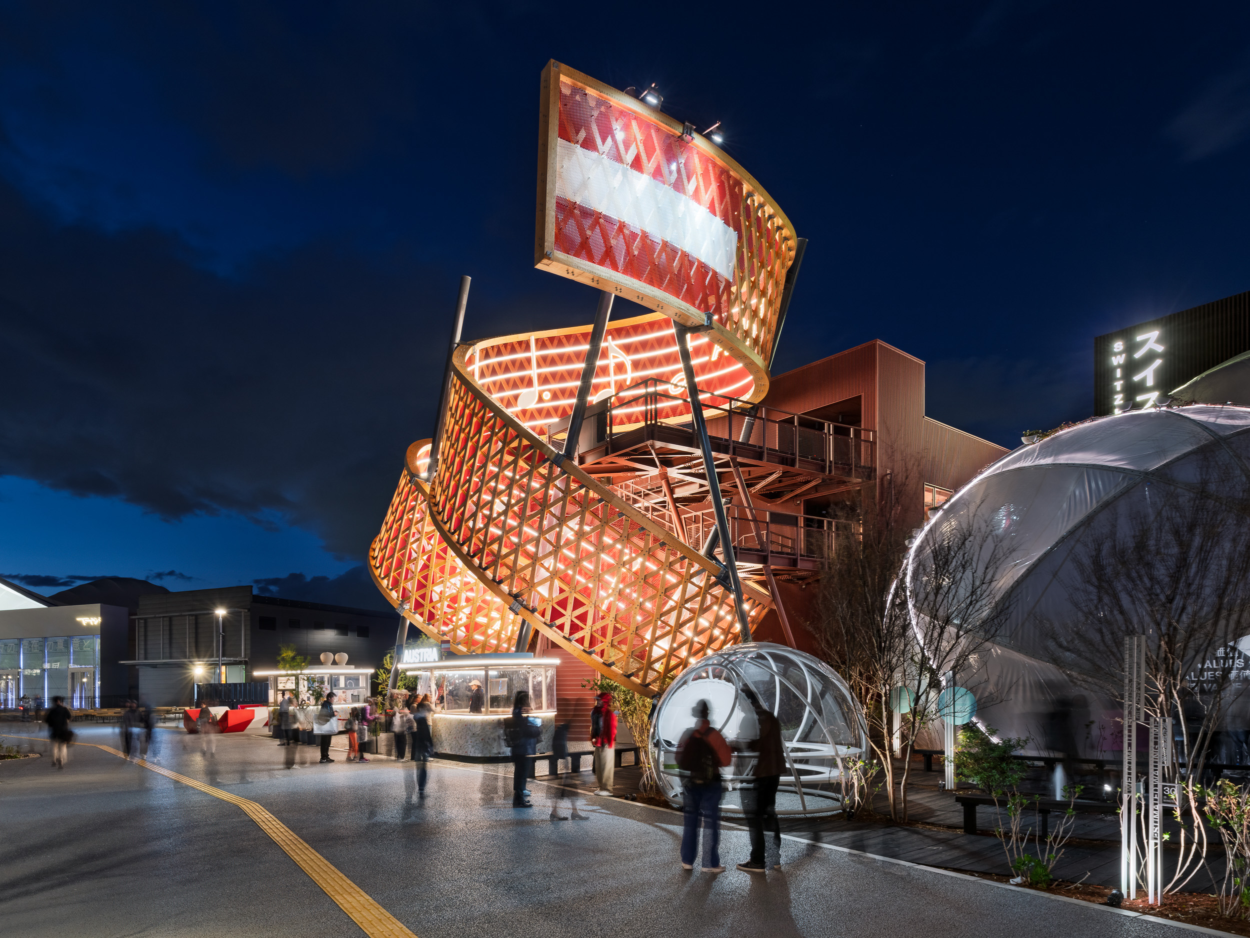 So unterschiedlich die inhaltlichen Konzepte, so vielfältig waren auch die baulichen Ansprüche der verschiedenen Pavillons. Beim Schweizer Auftritt «La Suisse Enchantée» wurde auf Wiederverwendbarkeit gesetzt: Die auffälligen Kugeln, die den Pavillon prägen, sind eine modulare Konstruktion aus rezyklierbaren Materialien. Aufgrund geringer Platzverhältnisse und fehlendem Lager galt es, die Lieferungen punktgenau und bedarfsgerecht zu koordinieren. Die Architektur von Kuwait, dessen gigantische freischwebende Dachkonstruktion in Flügelform besonders anspruchsvoll ist, galt es, spezifische Vorkehrungen hinsichtlich der Statik zu treffen. Der Pavillon von Österreich wiederum, in dem unter dem Motto «Composing the Future» die musikalischen Errungenschaften des Landes inszeniert werden, verfügt über eine spektakuläre Notenband-Skulptur aus Holz. Diese wurde in Österreich entwickelt und hergestellt und musste passgenau auf die japanischen regulatorischen Vorgaben abgestimmt werden. Usbekistan, das in Japan als «Garten des Wissens» auftritt, hat eine fahrbare Show-Plattform im Einsatz, für die zunächst in einem aufwändigen Prozess mit den japanischen Behörden die korrekte Norm gefunden werden musste. Der Auftritt von Brasilien «Living Laboratory» basierte auf einem von der Expo gestellten Standardgebäude. Durch gezielte Eingriffe wie eine massgeschneiderte Glasfassade wurde daraus eine individuelle Länderpräsentation. Unsere Aufgabe war es, den japanischen Bestand mit der geplanten Konstruktion zusammenzubringen.