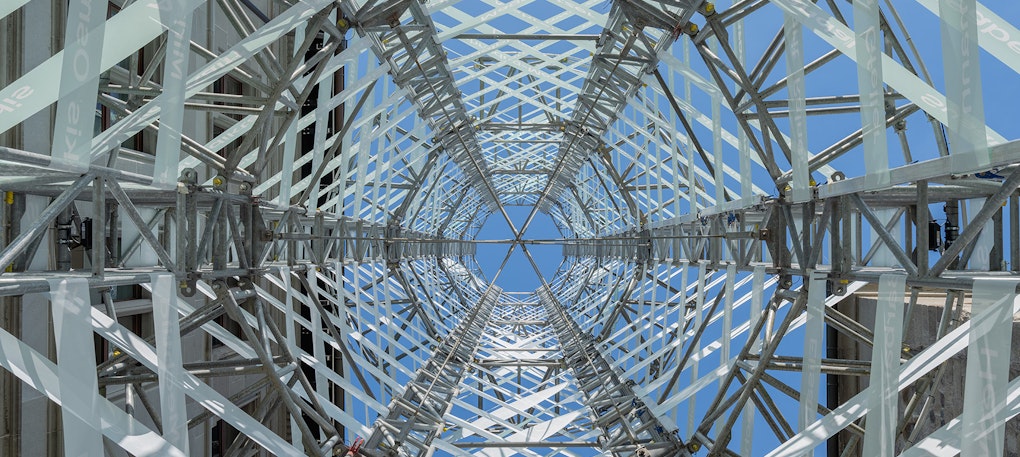 Im begehbaren Bereich werden verschiedene Schautafeln die Geschichte und die Idee des Projektes den Besuchern erläutern. Für den Turmbereich arbeitete NÜSSLI mit einer bewährten Gittermaststruktur, welche sich schon in der Vergangenheit bewährt und damit eine finanziell attraktive Lösung geschaffen hat. Diese werden jeweils am Boden vormontiert, mit Bändern und Technik bestückt und mit einem Mobilkran vor Ort aufeinander gesetzt. Bei den Gittermastelementen handelt es sich um Standardprodukte aus der Bauindustrie, die nach der Demontage für andere Installationen wiederverwendet werden. Die Bänder, die das Kleid des Turms bilden, sind 30 cm hoch und ca. 25 m lang und werden nach der Demontage ebenfalls einer neuen Nutzung zugeführt. Eine auf die Bedürfnisse der Stadt abgestimmte minimale Beleuchtung wird den Katharinen-Turm zudem wie eine Laterne beleuchten.