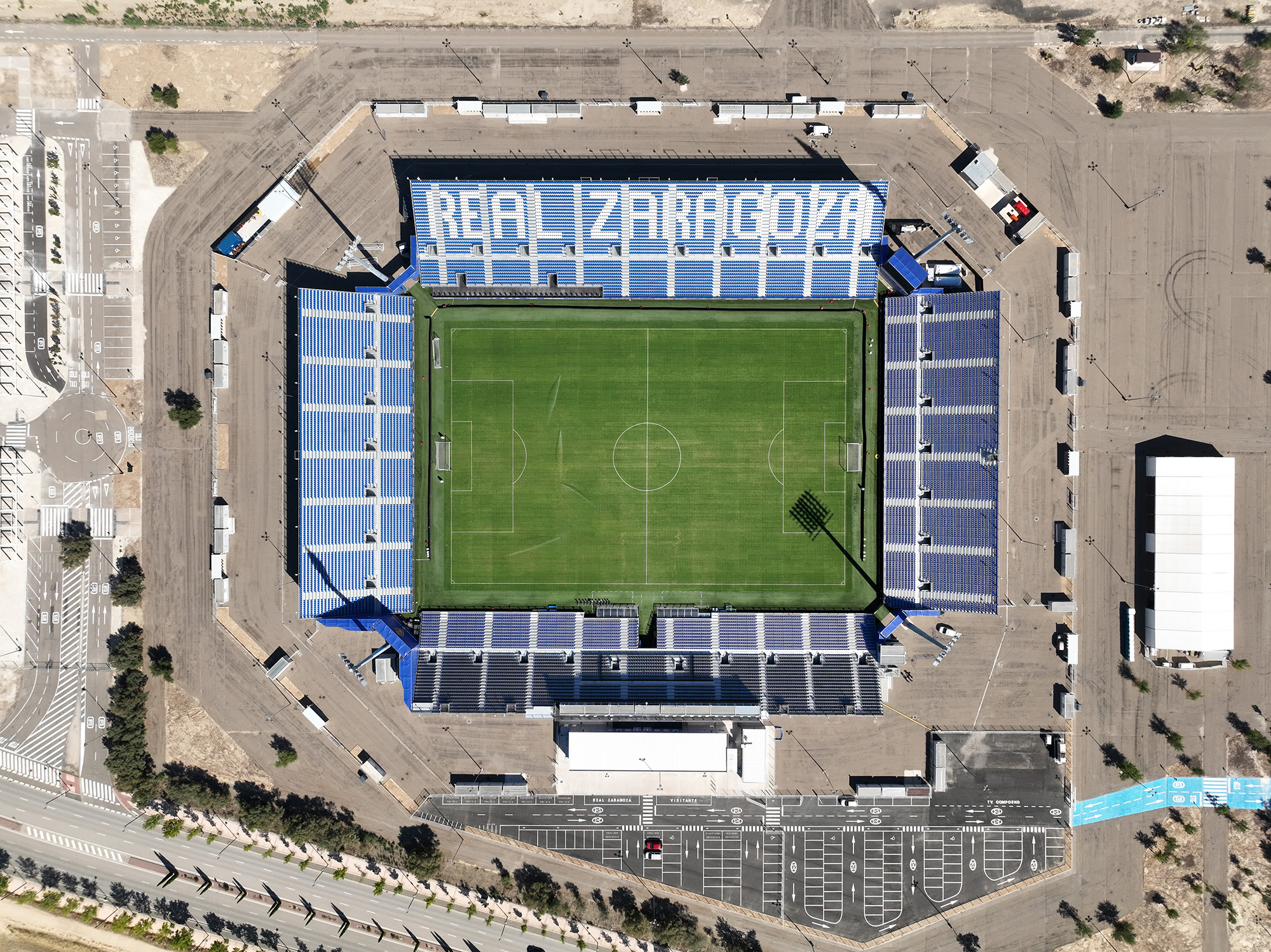 Für den traditionsreichen spanischen Fussballclub Real Zaragoza realisierte NÜSSLI Iberia gemeinsam mit dem Bauunternehmen MLN Mariano López Navarro ein temporäres Stadion für 20'000 Zuschauer – das erste seiner Art in Spanien. Der Neubau entstand in Rekordzeit: Nach Baubeginn im März 2025 konnte bereits im Juni der Spielbetrieb aufgenommen werden. Die Anlage umfasst drei Sitzplatztribünen sowie eine Haupttribüne auf einer Gesamtfläche von 120 × 80 Metern. Sie ist vollständig für den professionellen Spielbetrieb der LaLiga ausgerüstet – inklusive Flutlichtanlage, Anzeigetafeln, Umkleidekabinen, Presse- und VIP-Bereichen, Gastronomie sowie Merchandising-Shop.