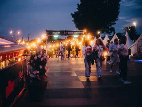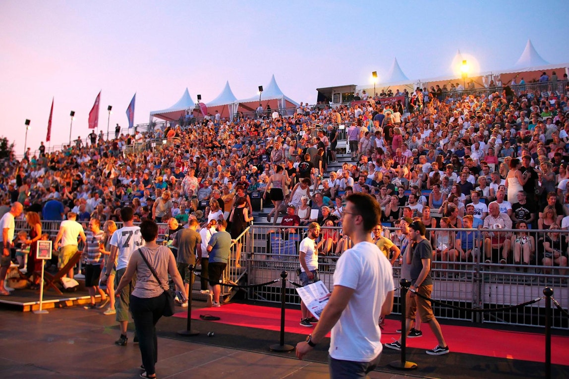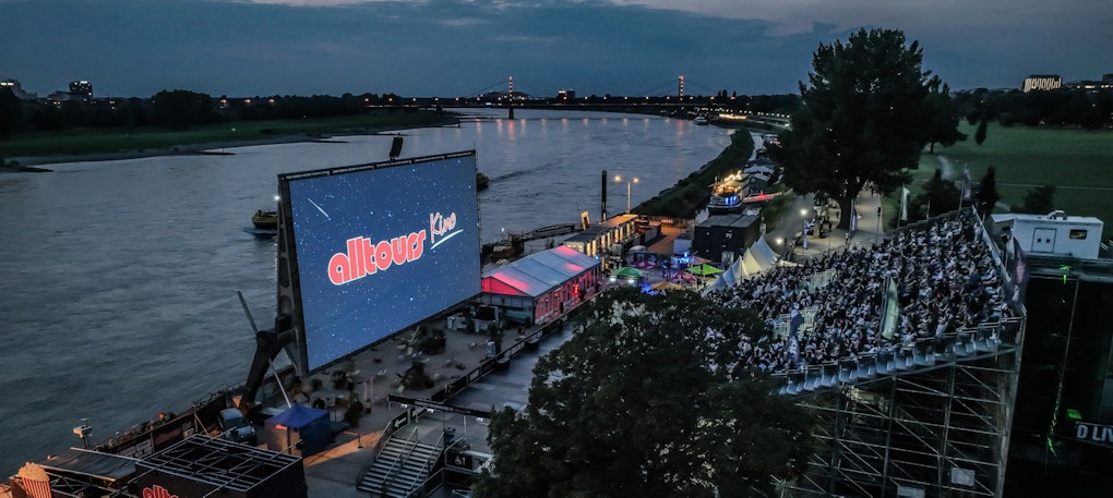 NÜSSLI sorgte beim alltours Open-Air-Kino mit der Premium-Tribüne für einen hohen Sitzkomfort und trug somit zur Realisierung des Rheinpark Düsseldorf Aussichtpunktes für alle Film- und Kinofans bei. Zudem errichtete das NÜSSLI Team den VIP-Bereich „Sky Lounge“ mit bestem Blick auf die gigantische Leinwand.