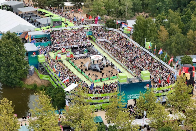 Wer es nach 3,8 km Schwimmen, 180 km Radfahren und 42,2 km Laufen ins Ziel schafft, muss gebührend gefeiert werden. Dafür haben wir bei der Datev Challenge in Roth die passende Zielarena errichtet. Hier empfingen Zuschauer und Medienvertreter die erfolgreichen Athleten.