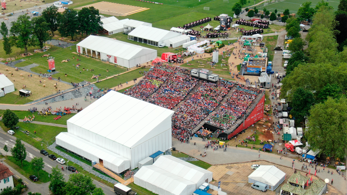 Das eidgenössische Turnfest findet alle sechs Jahre statt und bereits zum siebten Mal in Aarau. NÜSSLI hat im Auftrag von der Hunziker AG die Haupttribüne auf dem Festgelände um 1688 Sitzplätze erweitert und eine 50 Quadratmeter grosse Unterkonstruktion für die Mediencontainer oben auf der Tribüne geliefert.