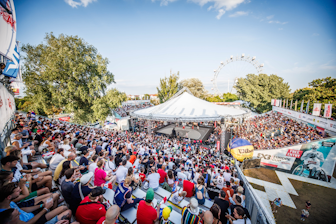 Wie innovativ und flexibel Eventarchitektur sein kann, bewies die 3x3 Arena auf der Kaiserwiese. Mitte August startete das Team von NÜSSLI mit den Aufbauarbeiten. Direkt vor einem der wohl bekanntesten Wahrzeichen Wiens entstand innerhalb weniger Tage die grösste Open-Air-Basketball-Arena Europas für die FIBA 3x3 Basketball-Europameisterschaft. Die Arena bot Platz für bis zu 4.000 Zuschauerinnen und Zuschauer und wurde vom NÜSSLI Team mit höchster Präzision und Flexibilität geplant und umgesetzt. Die komplett ausgestattete Arena bot sowohl den Athletinnen und Athleten als auch dem Publikum optimale Bedingungen: Vier Tribünen sowie 40 Plätze direkt am Spielfeld für Rollstuhlfahrer und -fahrerinnen und Begleitpersonen, das Spielfeld, zwei Warm-up-Courts, einen Werbeturm und Podeste für Licht- und Tontechnik sowie DJ. Ein Logenturm mit 30 Achter- und sechs Viererlogen auf zwei Etagen ermöglichte Gruppen ein besonders hautnahes Live-Erlebnis und beste Sicht auf die packenden Matches.