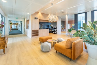 Agile Firmen brauchen moderne und flexible Bürolösungen, die sich schnell neuen Anforderungen anpassen. Flexoffice bietet seinen Mietern solche Büroflächen an; dazu hochmoderne Meetingräume, Aktivitätszonen, Sitzecken, Lounges und Community-Küchen. Umgesetzt wurden die massgeschneiderten Büroräume und Innenausbaulösungen aus Holz von der NÜSSLI Schreinerei. Mit viel handwerklichem Geschick und einem Auge fürs Detail sind Wandverkleidungen, Theken, Tische, Bänke und Kabinen entstanden – zum alleine oder gemeinsam Denken und Arbeiten.
