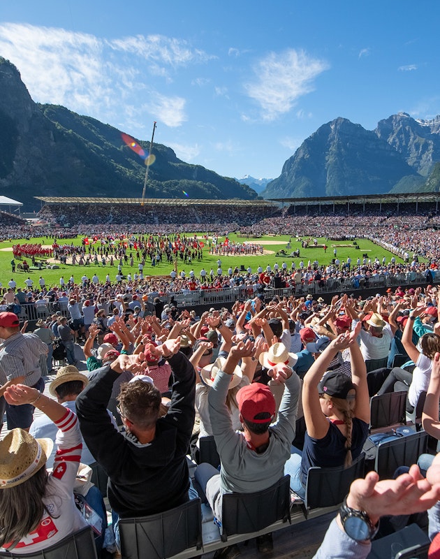 Bereits Ende Juli starteten die NÜSSLI Projektteams vor Ort und bauten die Zuschauerinfrastrukturen auf: zwei NT-Tribünen mit circa 12.000 Sitzplätzen und eine Premium Tribüne für weitere knapp 11.000 Zuschauer und Zuschauerinnen.
