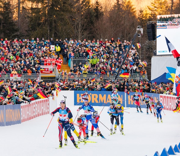 Im Januar dreht sich in der Chiemgau Arena in Ruhpolding alles um den nordischen Skisport. Zum wiederholten Mal traf sich hier die internationale Biathlon-Elite zum BMW IBU Weltcup. Für zusätzlichen Platz und Komfort sorgten temporäre Tribünen und andere Eventinfrastrukturen von NÜSSLI.
