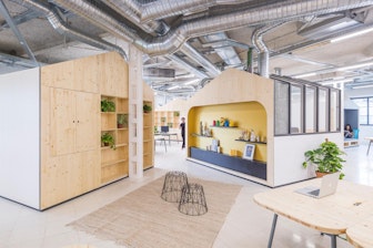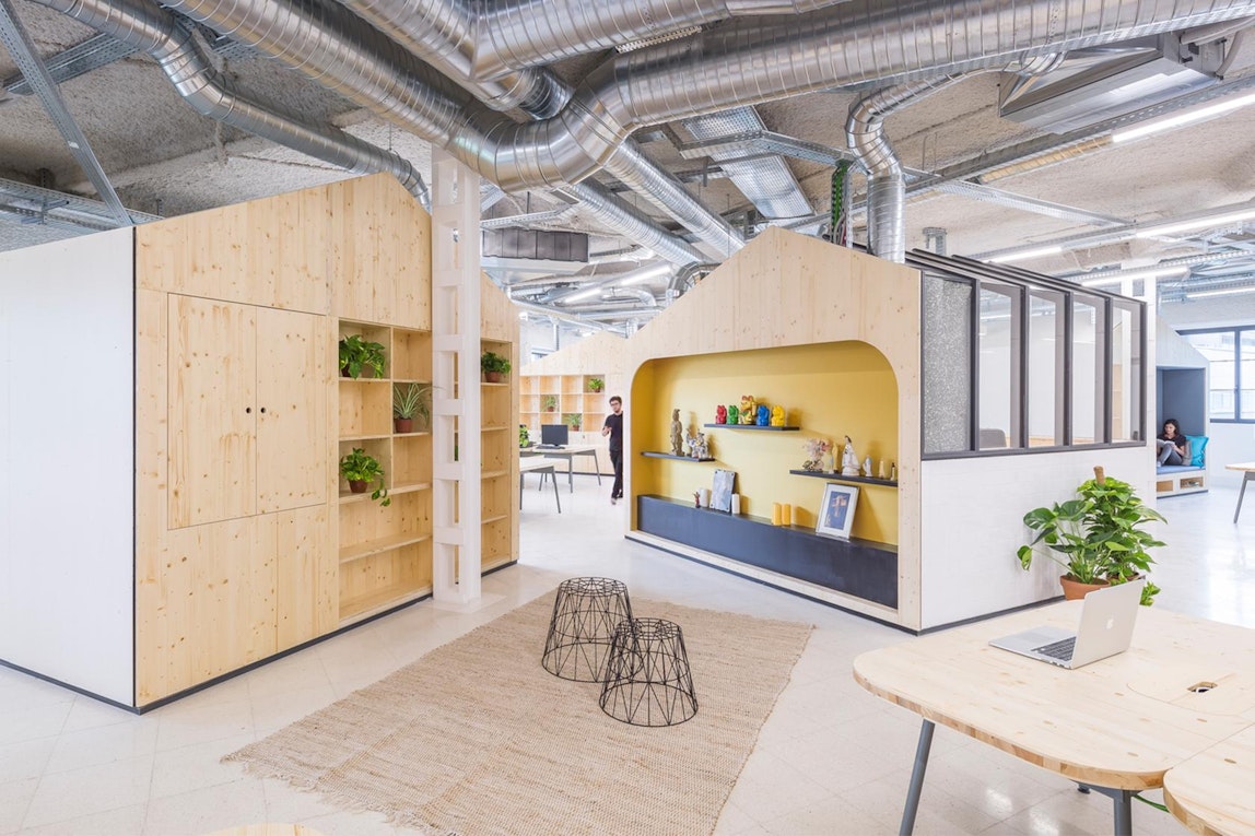 Wie aus einer alten Jeansfabrik inspirierender Arbeitsraum entsteht, zeigt der Bau des neuen Hauptquartiers der McCann World Group in Madrid. Studio Banana entwickelte für die Räumlichkeiten mit Loftcharakter ein aussergewöhnliches Design, das NÜSSLI umsetzte. Genaugenommen plante und produzierte NÜSSLI vor allem 68 völlig unterschiedliche Hütten und 170 Tische für den 6000 Quadratmeter grossen Arbeitsraum der Werbeagentur. Nicht nur die Verkleidung – Holz, Fliesen, Glas, Stahlblech, Stoff, Polycarbonat – der einzelnen Raumeinheiten war verschieden, sondern auch deren Verwendungszweck und damit die Ausstattung. Allein für die Tragekonstruktion der Hütten, die als Einzelbüros, Gesprächsräume, Werkstätten, Druckerstationen, Lager und Schulungsräume genutzt werden, verbaute das NÜSSLI Team fast fünf Kilometer Holzbalken und knapp drei Kilometer Stahlrohr. Auch die Tische waren alles andere als gewöhnlich: Die Architekten entwarfen exklusiv für dieses Projekt Tische aus Holz und Stahl in verschiedenen Grössen und mit vielen nützlichen Details wie textilen Trennwänden, Utensilienbehältern und unter Klappen versteckten Elektroinstallationen. Bei so wenig Standard und so vielen Variationen ist umso beachtlicher, dass von der Beauftragung bis zu dem Tag, als 600 Personen ihren neuen Arbeitsplatz bezogen, lediglich 12 Wochen verstrichen.