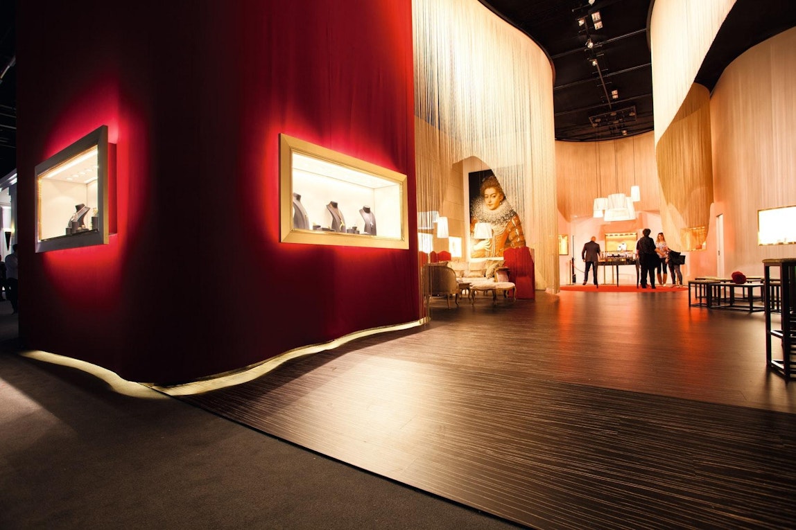 Für die spanische Marke Carrera y Carrera plante und baute NÜSSLI einen Messestand. Der Stand verfügte über eine Gesamtfläche von 300 Quadratmeter und wies eine rote Samtfassade mit Rohrstruktur auf, die verschiedene Vitrinen in Schaufensterform beherbergte.