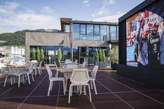 Innerhalb von zwei Wochen stellte das NÜSSLI Team die Anlage erstmalig 2021 auf. Die Wände und der Boden sind hochwertig mit Holz verkleidet. Zusammen mit den individuell angefertigten Geländern aus Glas verleihen sie dem Gastgarten eine einladende Atmosphäre. Direkt nach dem Rennen baute die Crew den Gastgarten systematisch ab, um ihn einzulagern und für die nächste MotoGP™ Saison nachhaltig wieder aufbauen zu können.