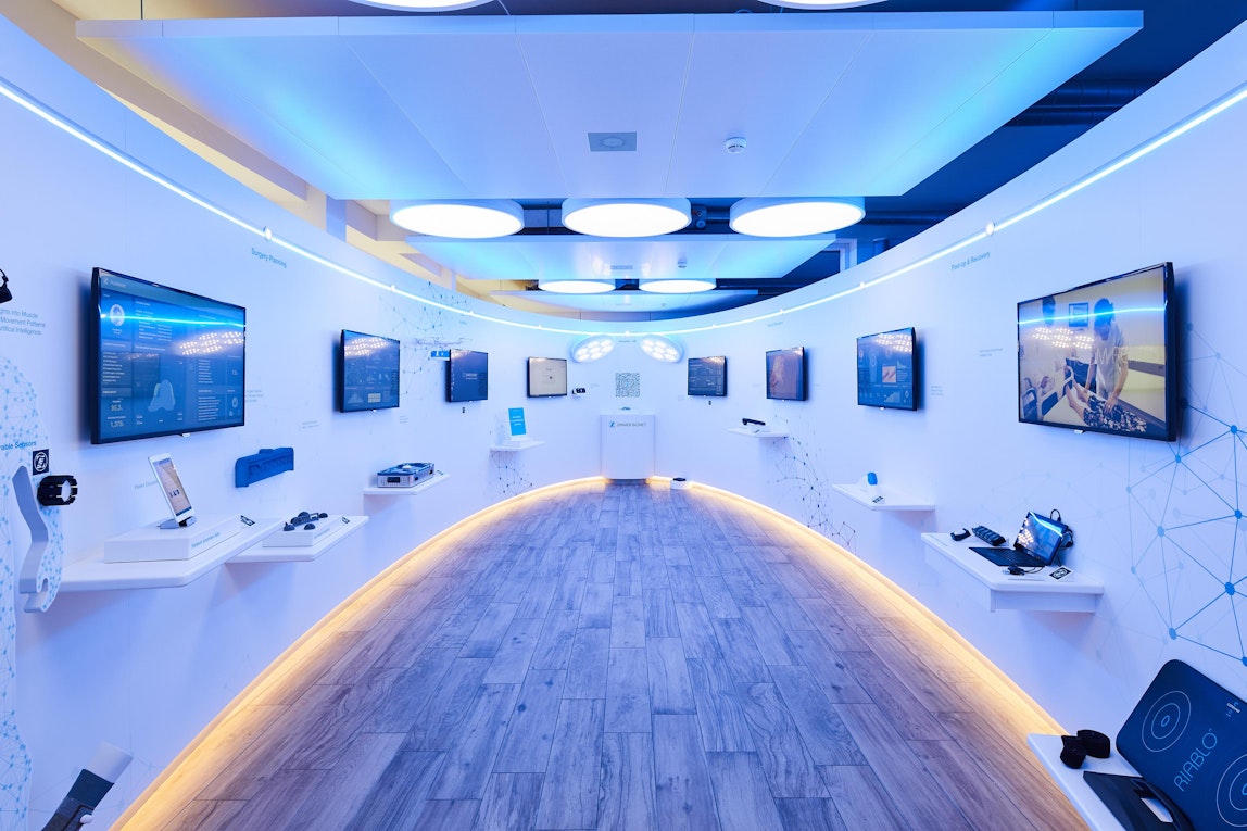 Zimmer Biomet hat Bachmann & Dammann beauftragt mit der Innovation Lounge einen repräsentativen Raum zu entwerfen, in welchem die Technologien der Firma perfekt in Szene gesetzt werden können. Die NÜSSLI Gruppe hat das Wandkonzept mit sämtlichen Exponateflächen, Dekorationselementen und der LED-Beleuchtung umgesetzt.