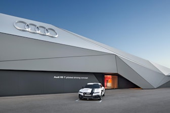 At several locations in Barcelona, AUDI has presented its newest technologies to their international distribution partners. On the one hand, a polygonal body was created at the race track out of an existing pit building as well as a gigantic writing branding the whole valley measuring 5 meters in height and 100 meters in length. On the other hand, through a complete modification of the Vivero Beach Club and the Restaurant Miramar the dynamic of AUDI has been brought into those buildings. All of these exclusive buildings have been erected by the NUSSLI Group in no more than 10 days.