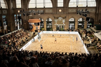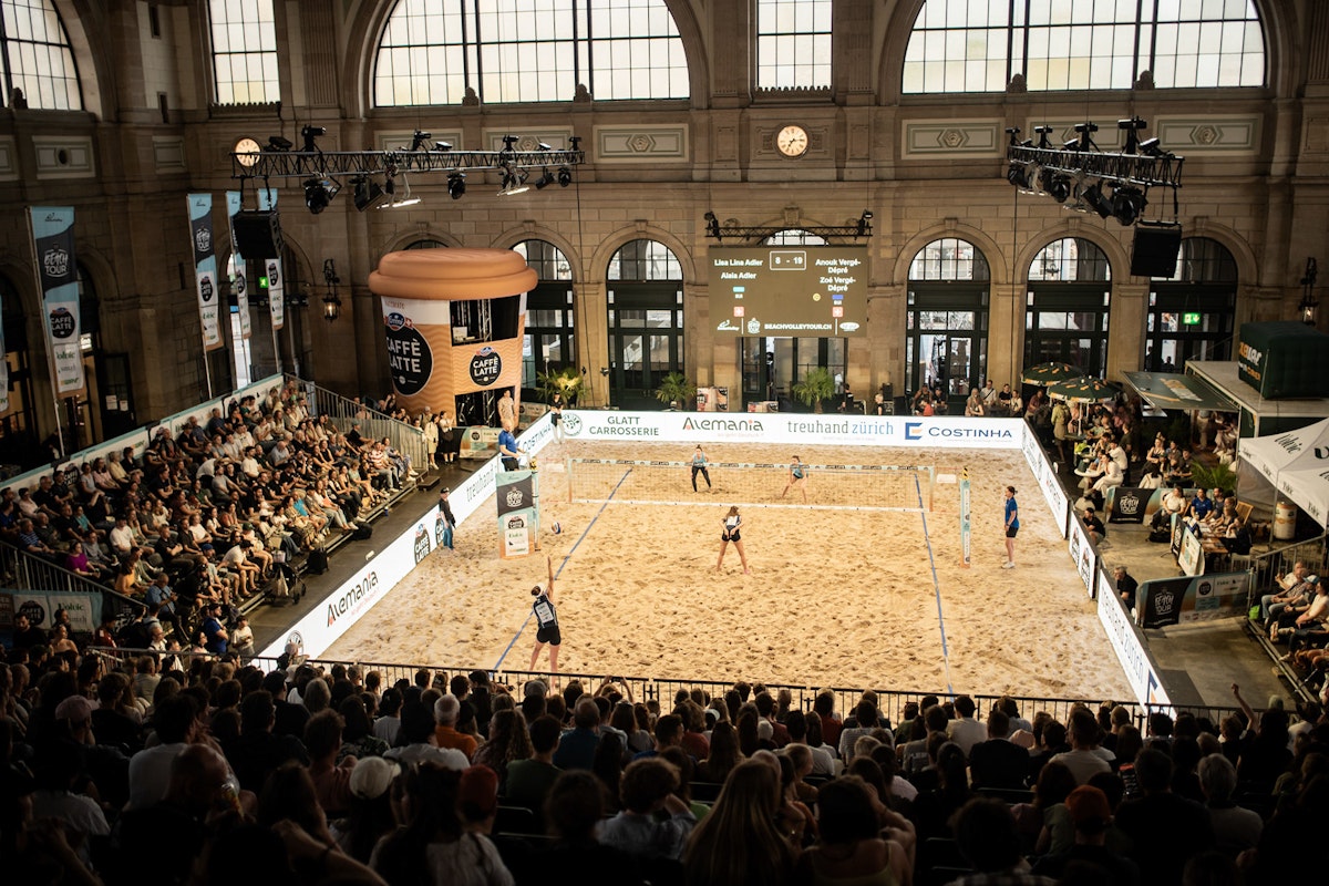 The next event followed immediately afterwards: the EMMI CAFFÈ LATTE Beach Volley Tour transformed the station forecourt into an urban beach volleyball court. Sand, playing surface and grandstand facilities were set up within a very short space of time and provided the framework for several days of tournaments in the heart of Zurich.