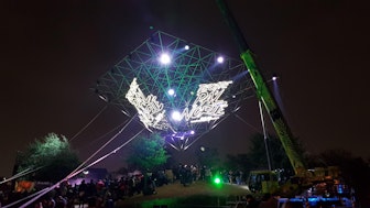 A flying pyramid welcomed the music fans at the entrance of the Festival Pa’l Norte in Mexico. A big crane kept the 16x16x8 meters large pyramid in place. The special form and all the light equipment made the triangle a real eye catcher.