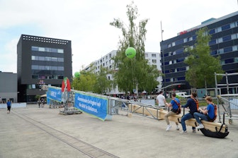 A giant seesaw stood in the middle of Zurich on Turbinenplatz and was the start of the creative voting campaign in favor of a balanced pensions insurance (AHV).