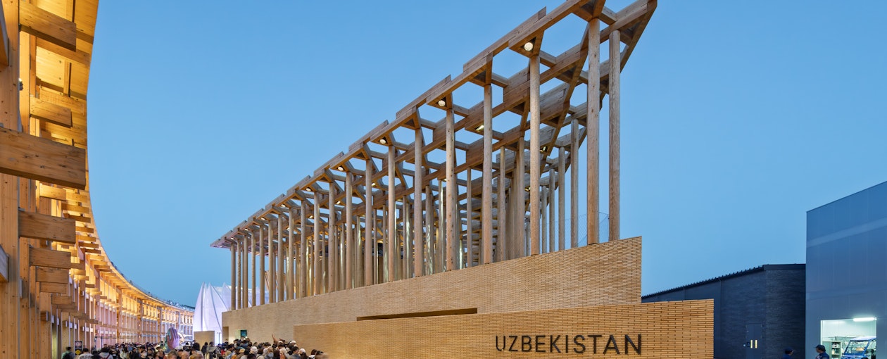 ATELIER BRÜCKNER ha desarrollado el concepto del pabellón uzbeko y es responsable de la arquitectura sostenible y la exposición. NUSSLI ha construido el pabellón de dos plantas.