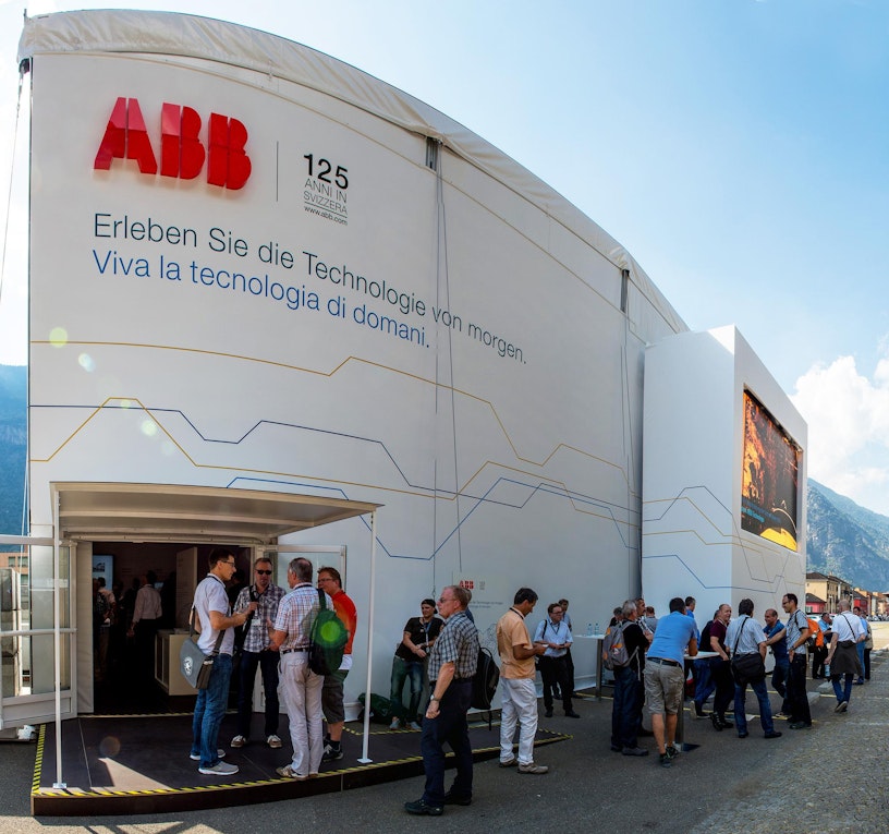 En el marco del 125 aniversario de ABB en Suiza y con motivo de la gran afluencia de visitantes en la inauguración del túnel de base de San Gotardo, el pabellón de ABB hizo una gira en septiembre y octubre por Biasca, Lucerna, Zúrich, Lugano y Baden. En la superficie de exposición de 200 m2 los visitantes pudieron sumergirse en el fascinante mundo de las tecnologías de ABB y experimentar de primera mano las innovadoras soluciones tecnológicas para el transporte, la industria, la tecnología de la construcción, así como el sector del suministro energético. El grupo NUSSLI se encargó de montar y desmontar el pabellón en los lugares correspondientes en breves plazos.