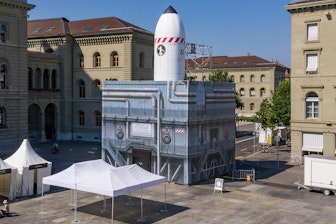 Para las celebraciones en la Bundesplatz, NUSSLI construyó un cubo con cohete de material propio. Desde el exterior se recubrió de forma que pareciera que había un verdadero cohete en la Bundesplatz. En el interior también tenía el aspecto de un cohete. El cohete temporal proporcionó información sobre la investigación espacial.