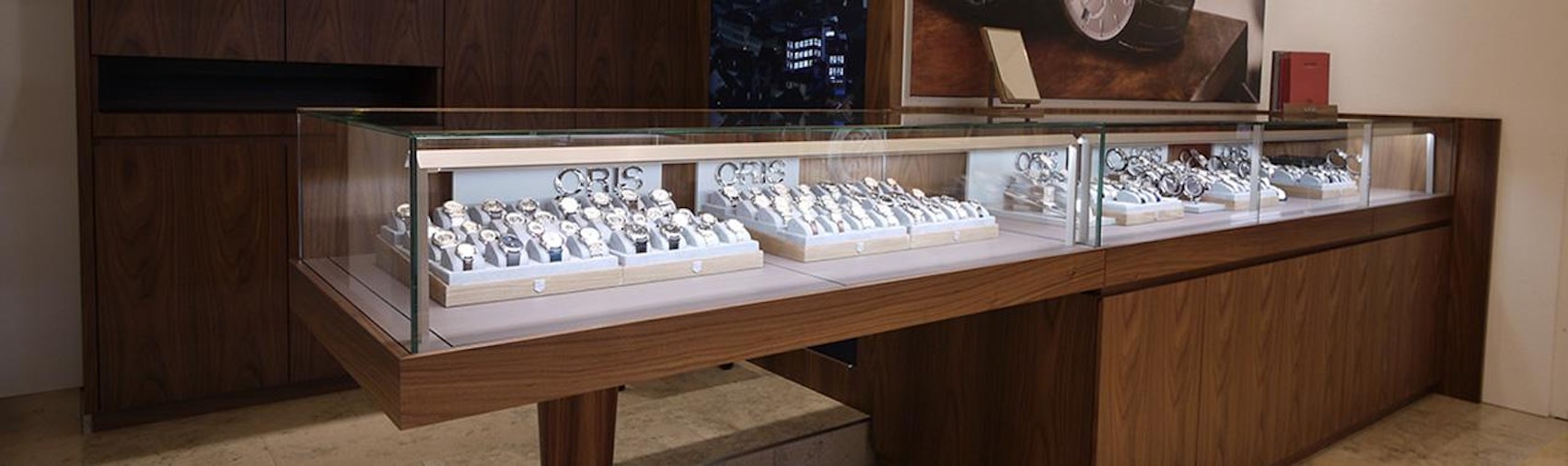 Oris lleva más de 100 años fabricando relojes en Suiza. La manufactura relojera suiza se presenta también en la empresa de joyería Gübelin con el lema «real watches for real people». El grupo NUSSLI ha creado para Oris una Shop-in-Shop y ha adaptado la extremadamente exigente realización a los elevados requisitos en cuanto a calidad.