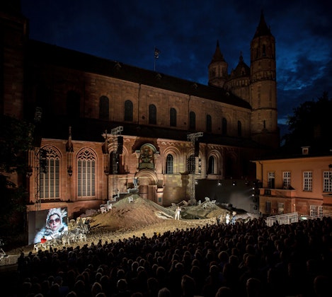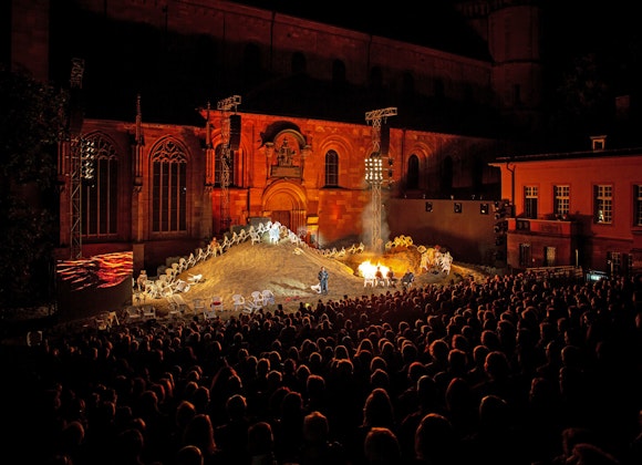 El Festival de los Nibelungos se celebra cada verano en el lugar original de la saga de los Nibelungos: en Worms, justo delante de la histórica catedral. Cada año, NUSSLI construye una gran grada para el evento, incluida una barrera acústica. Además, el equipo de NUSSLI suministra y monta la impresionante escenografía.