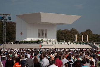 Pope Benedict XVI visited the city of Freiburg on September 24 and 25, 2011 as part of his tour through Germany. About 100,000 faithful catholics made pilgrimages to the airport grounds to see the pontiff up close and personal. The Pope adddressed the crowd there from an altar island built by NUSSLI.