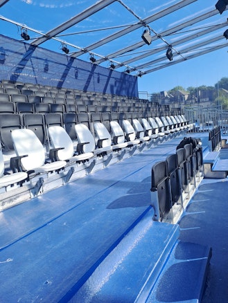 Grâce à différentes options d'inclinaison et à une pente parabolique, la tribune Premium offre des lignes de visibilité optimales à tous les spectateurs. Qu'il s'agisse d'une installation rectiligne, de coins polygonaux ou d'une arène complète, c'est le système qui s'adapte à votre événement, et non l'inverse.