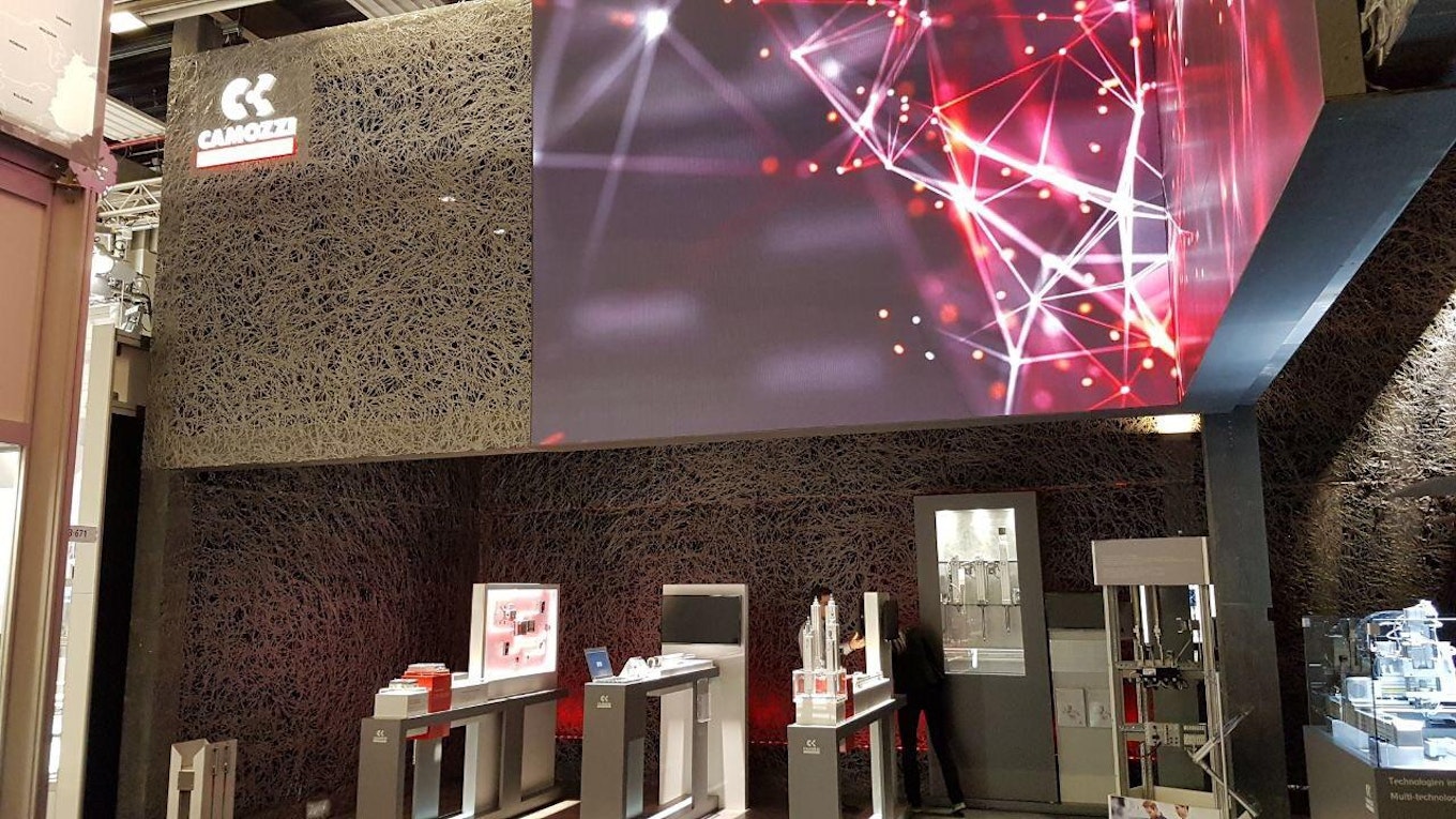 Les stands d'exposition du groupe Camozzi en Europe sont planifiés et réalisés par le groupe NUSSLI depuis plusieurs années. Une équipe expérimentée en construction de stands accorde une grande attention aux détails du concept de salon/lounge. La maille emblématique confère au stand une atmosphère chaleureuse et accueillante aux visiteurs, permettant des échanges commerciaux dans une atmosphère détendue.