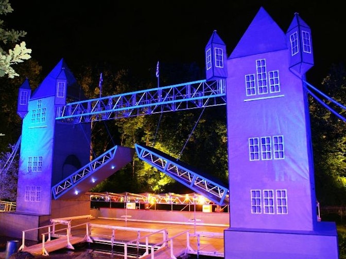 Ogni anno, l'associazione sportiva Müllheim trasforma il Rosenweiher in una spettacolare area per feste. Ogni volta vengono create nuove scenografie per il bar sull'acqua, dal Tower Bridge al Bundeshaus. Queste elaborate costruzioni richiedono non solo idee creative, ma anche strutture stabili sullo sfondo. Il materiale modulare flessibile offre la stabilità necessaria e allo stesso tempo lascia spazio sufficiente per la realizzazione creativa.